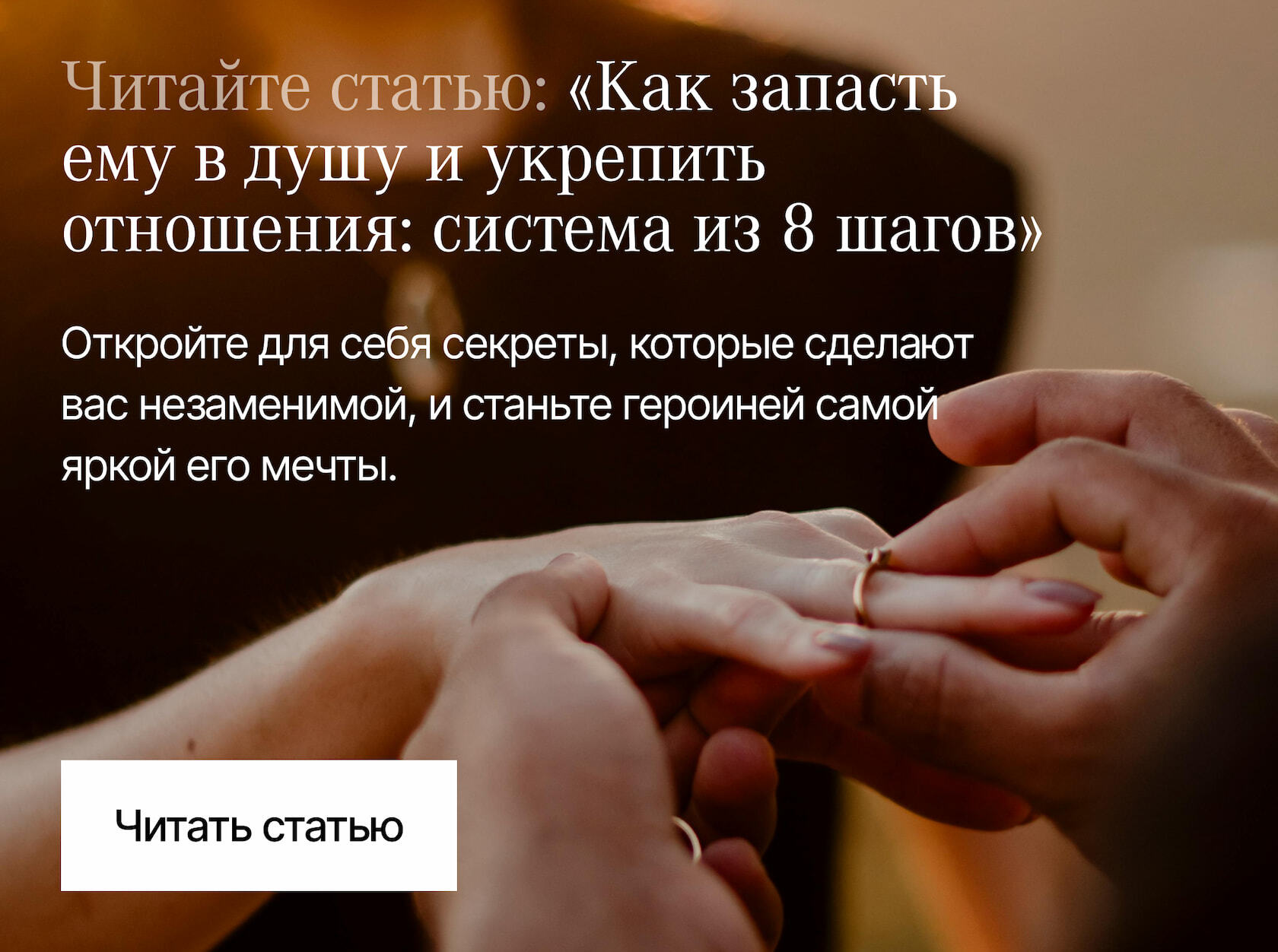 Если вы хотите углубиться в эту тему, почувствовать свою ценность, быть такой женщиной, которая вдохновляет на романтику, дорогие подарки, впечатления, желание удивлять и радовать, читайте статью-практикум «7 ключей к сердцу мужчины».